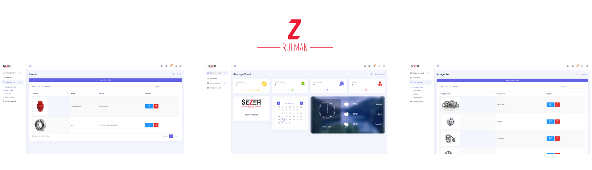 Firma için Ürünlerini sergileyebiliceği ve müşterilerinin ürünlerini kolayca bulabilmesini sağlayacak bir web tasarım yaptık bunun yanında arka planda ise Sezer Rulman firmasının işlerini takip etmesini kolaylaştırıcak ve ürün takiplerini performe edicek bir yazılım kodladık.